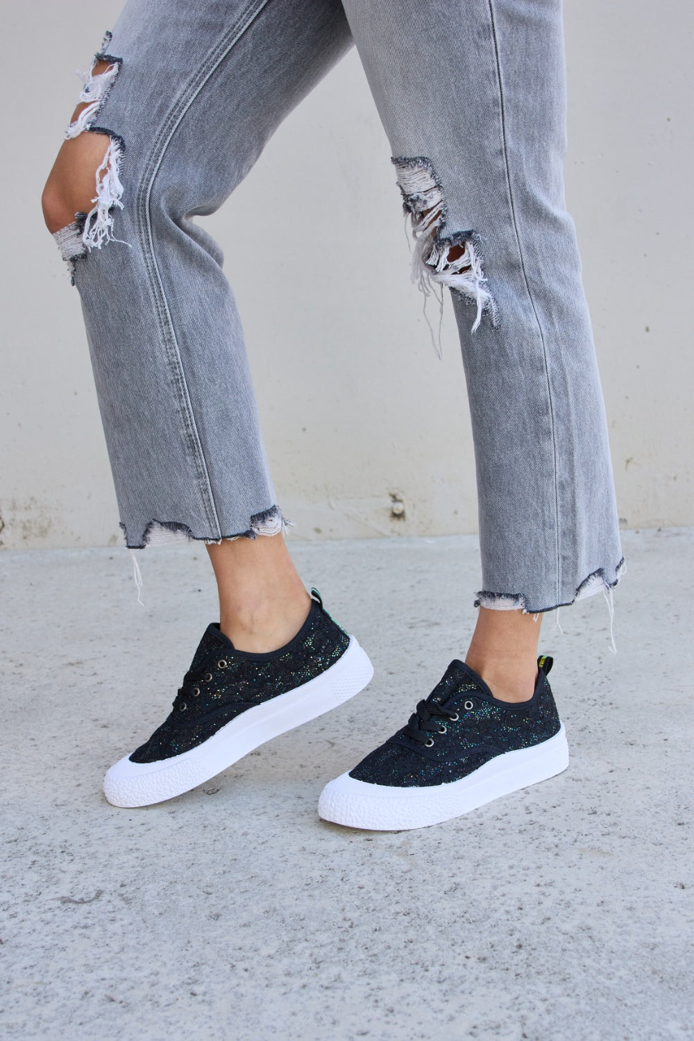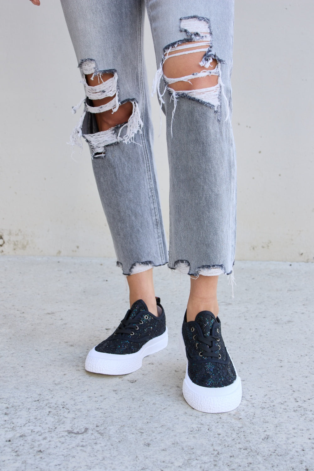 Sequin Lace-Up Platform Sneakers are a trendy and eye-catching footwear choice. With their sequin detailing, these sneakers add a touch of glamour and sparkle to any outfit. The lace-up design ensures a secure and adjustable fit, while the platform sole adds height and a fashionable edge. Whether you're going for a night out or want to make a statement during the day, these sneakers will elevate your look with their bold and stylish design. Step out with confidence and show off your personality with these sequin lace-up platform sneakers.